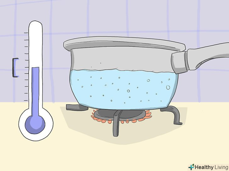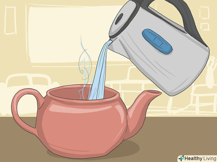 Перелийте воду в чайник для заварювання.коли вода дійде до відповідної температури, перелийте її в чайник або посудину, в якому ви збираєтеся заварювати чай. Заварювальні чайники роблять з різних матеріалів: залізо, скло або фарфор.- Деякі матеріали (наприклад, залізо) довше зберігають тепло, а тому краще підходять для заварювання таких видів чаю, яким потрібна більш висока температура. Фарфор ж, навпаки, остигає швидше, тому краще підходить для більш делікатних видів чаю.[6]