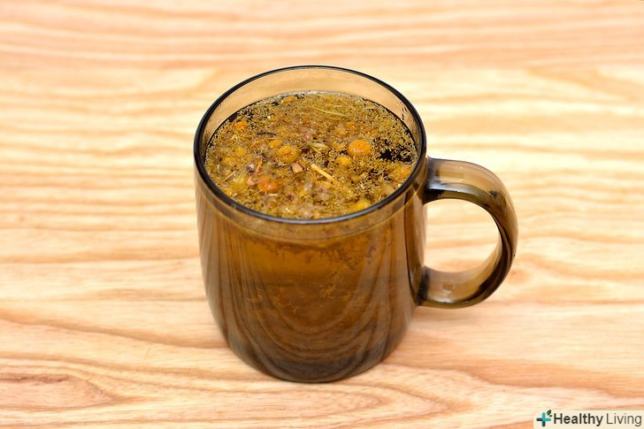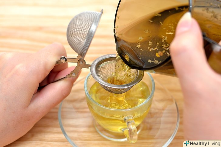 Процідіть в інший стакан.використовуйте ситечко, щоб зловити квіти ромашки.