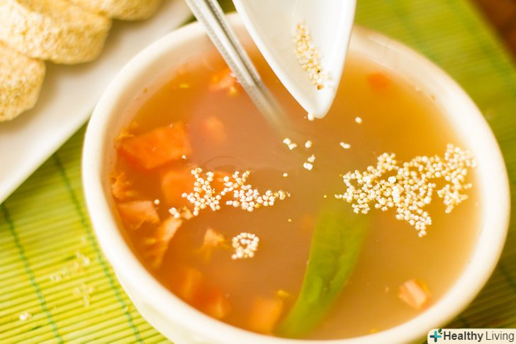 Додайте амарант в супи або чилі.амарантове борошно можна додавати в суп як загусник або ж можна додати готовий амарант для додавання смаку і текстури.