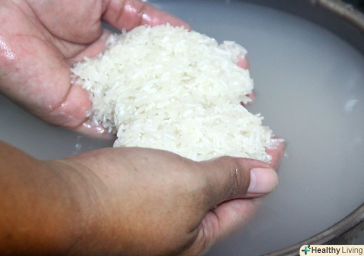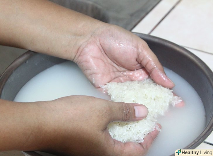 Помістіть рис в миску і залийте холодною водою.висипте 1 склянку (185 г) жасминового рису у велику миску. Залийте рис достатньою кількістю холодної води, щоб повністю його покрити.[1]