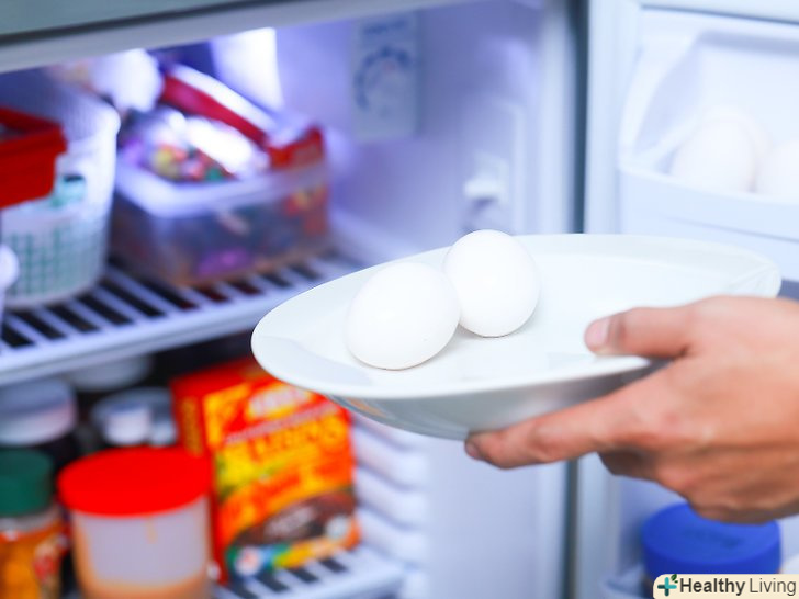 Дістаньте яйця з холодильника перед їх приготуванням, щоб вони нагрілися до кімнатної температури.якщо ви зберігаєте яйця в холодильнику, важливо дістати їх перед приготуванням, щоб вони не були холодними. Коли яйце нагрівається, повітря всередині повітряного мішка розширюється і починає тиснути на шкаралупу, прагнучи знайти вихід. У шкаралупі є пори, що забезпечують газообмін зародка з середовищем. При різкому перепаді температур цей "запобіжний клапан" не справляється зі своїми обов'язками, тиск всередині яйця сильно підвищується, і шкаралупа тріскається. Тому почекайте, поки яйця нагріються до кімнатної температури.- Якщо ви не можете чекати, поки яйця досягнуть кімнатної температури природним шляхом, потримайте їх в гарячій воді протягом декількох хвилин перед приготуванням.