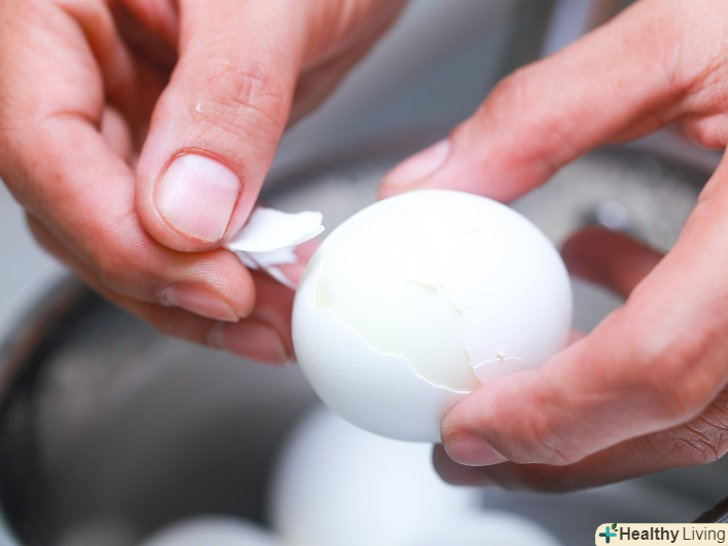 - Як правило, легше чистити яйця з потрісканою шкаралупою. Покладіть яйця назад в каструлю з кришкою. Струсіть каструлю, щоб на шкаралупі з'явилися тріщини, перш ніж чистити яйця. Можливо, вам доведеться зробити це кілька разів, щоб всі яйця вкрилися тріщинами.