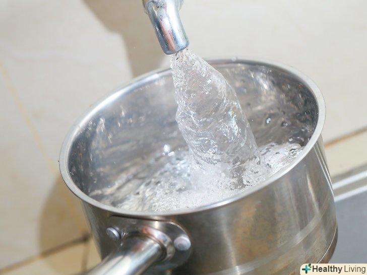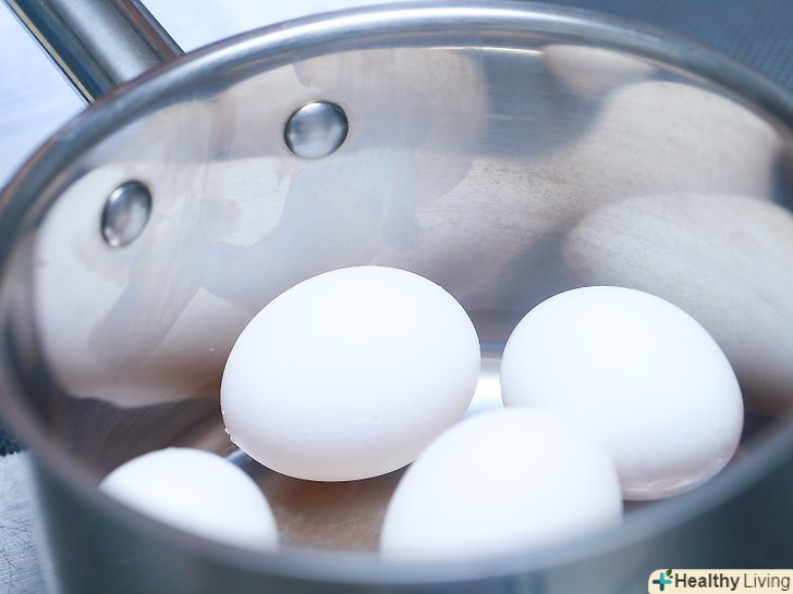 Залийте яйця холодною водою.обережно наповніть каструлю водою, принаймні, на 3 см вище рівня яєць. Наливайте воду таким чином, щоб струмінь не потрапляла на яйця. Якщо вам не вдається налити воду таким чином, притримуйте яйця рукою, щоб вони не ковзали і не потріскалися.- Додайте половину чайної ложки солі у воду. Завдяки цьому менше ймовірності, що шкаралупа трісне. Крім того, вам легше буде очистити яйця від шкаралупи. У солоній воді білок згортається швидше. Тому щоб уникнути витікання білка при розтріскуванні шкаралупи воду слід підсолити.