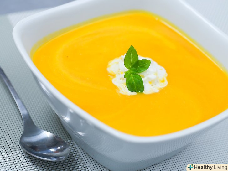 Приготуйте суп з мускатної гарбуза.такий суп має шовковисту, кремову текстуру, і підійде, щоб зігрітися зимовим вечором. Щоб приготувати суп, дотримуйтесь наступних кроків:- Запечіть шматочки гарбуза в духовці до розм'якшення.