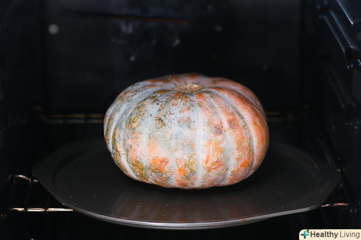 Якщо ви хочете пропустити процес очищення гарбуза, то ви можете запекти гарбуз цілком, а потім розрізати її.проткніть всю поверхню гарбуза виделкою, помістіть її на деко і запікайте при температурі 170 градусів Цельсія. Запікайте гарбуз протягом години, поки вона не розм'якшити. Дістаньте її з духовки, дайте їй охолодитися, а потім розріжте її на шматочки.