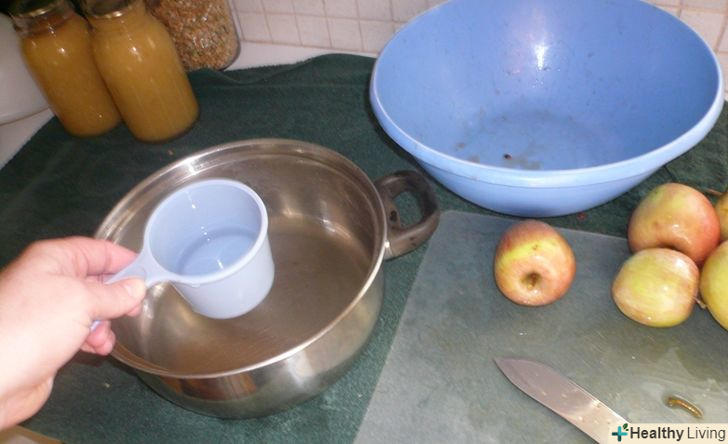 Налийте півчашки води на дно Казанка, який використовуєте для приготування яблук. Це запобіжить підгорання яблук, і вони пропарити. Деякі яблука соковитіше, ніж інші, і можна не додавати воду ... але потрібно буде поекспериментувати з різними сортами яблук, щоб знати, скільки води додати, щоб отримати хорошу консистенцію.