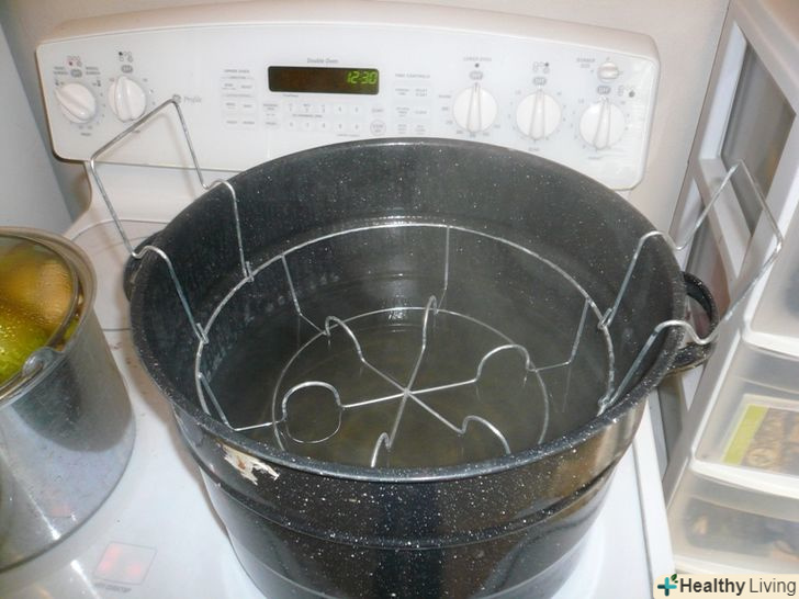 Опустіть наповнені банки в гарячу воду за допомогою ручок на підставці.