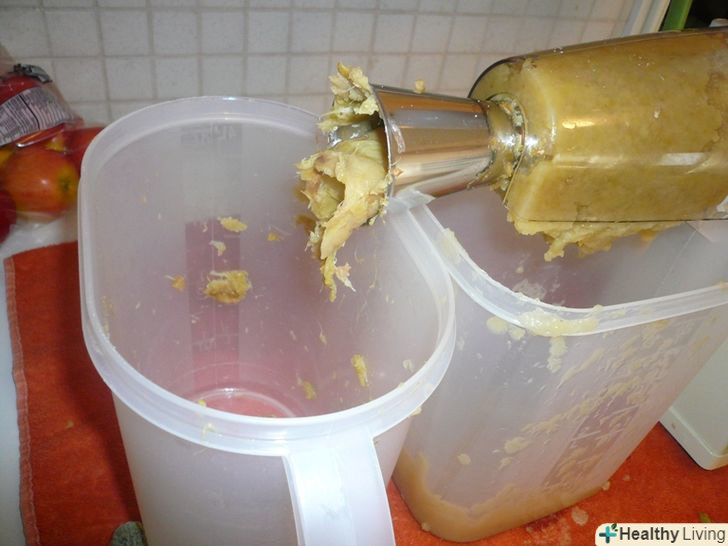 Пропустіть приготовані яблука через сито.поставте два контейнери під випускні отвори. Один для пюре, один для плодоніжок / насіння і т. д.