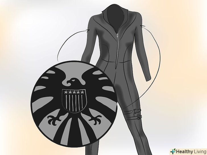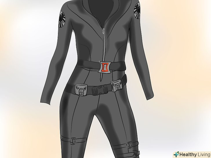 Одягніть чорний комбінезон. Це головна частина вбрання Чорної вдови. У нього V-подібний виріз, довгі рукави і він щільно прилягає. У коміксах створений з тканини на подобу ПВХ, але я б не рекомендував намагатися знайти таке онлайн - шукайте більш бавовняну основу, спандекс. Якщо сумніваєтеся, використовуйте прості чорні легінси, і просту чорну куртку на застібці з довгими рукавами.