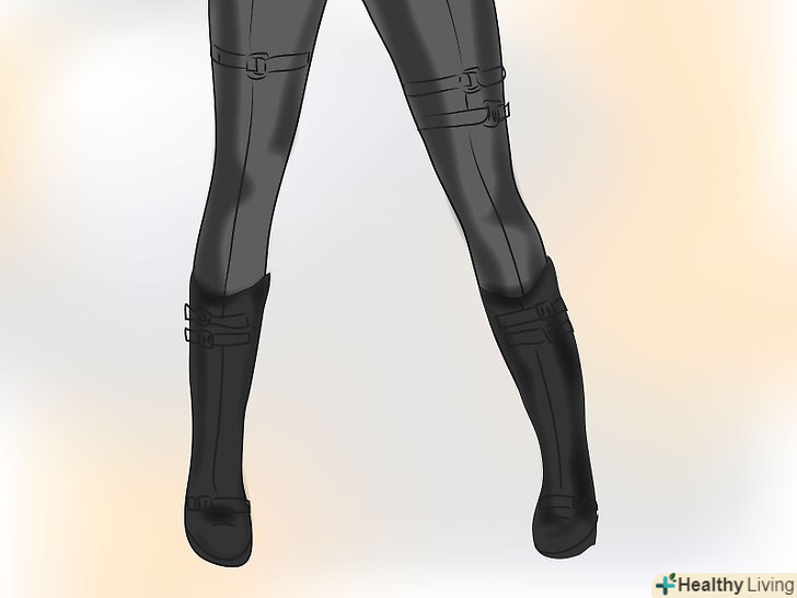 Взуйте чорні черевики, висотою по щиколотку або по коліно, з ременями і пряжками.якщо хочете щось вище, спробуйте чорні кеди на танкетці або чорні чоботи з каблуком - уникайте всього, що вище 10 см, і туфель на шпильках.