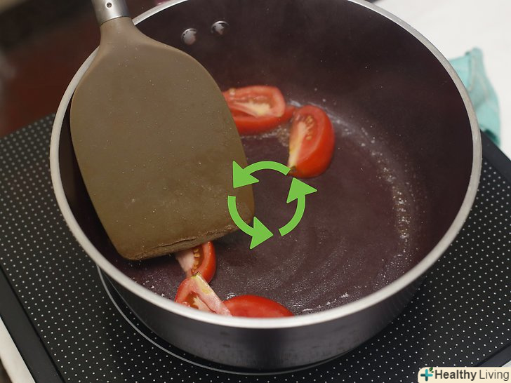 Протушкувати шматочки помідорів на середньому вогні протягом 10 хвилин.якщо ви збираєтеся додавати помідори в інше гаряче блюдо, то вам, можливо, не доведеться готувати їх так довго. Якщо ви нарізали помідори великими шматками, готуйте їх трохи довше.[1]- Слідкуйте за помідорами дуже уважно і негайно зніміть їх з вогню, якщо вони почнуть пригорати або надто висохнуть.