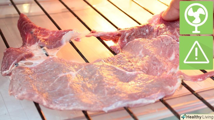 Підготуйте місце для витримки м'яса.у вас повинно бути місце або в холодильнику, або у вас повинен бути власний міні-холодильник, який можна використовувати виключно для витримки м'яса. Міні-холодильник-дійсно найкращий спосіб, оскільки суха витримка м'яса може мати трохи неприємний запах і може завоняти звичайний холодильник.- Вам також необхідно поставити в холодильник невеликий вентилятор-підійде звичайний настільний вентилятор. Виріжте отвір у ущільненні дверей холодильника, щоб ви могли протягнути через нього шнур вентилятора. Вентилятор важливий, оскільки він допомагає створити рівномірне середовище сухої витримки, яка сприяє рівномірному висушуванню м'яса з усіх боків.