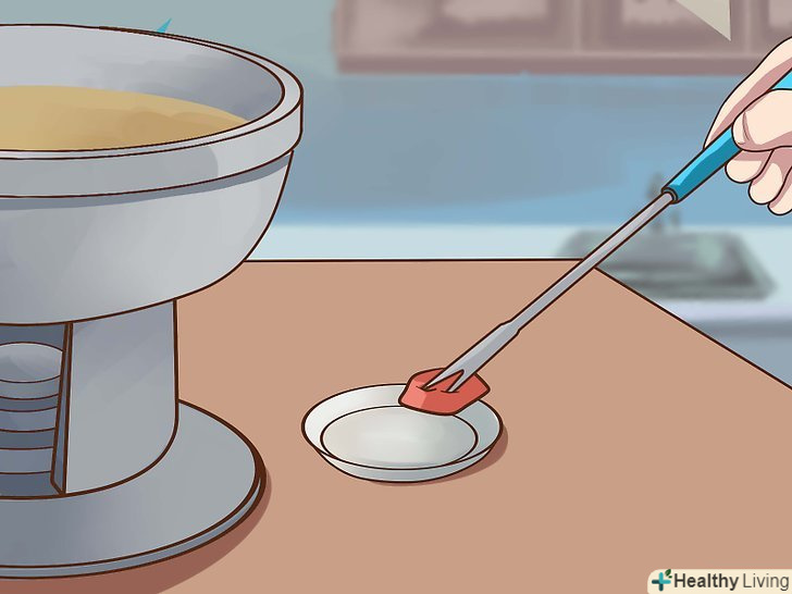 Увімкніть пальник для фондю, щоб підтримувати правильну температуру для рідини в каструлі.рідина повинна бути близько 190,5 градусів Цельсія - це ідеальна температура для приготування м'яса.- Повторно перевірте температуру за допомогою фритюрного термометра. Якщо рідина трохи охолоне, перш ніж ви переллєте е в каструлю для фондю. Опустіть термометр в гарячу рідину і виміряйте показання.