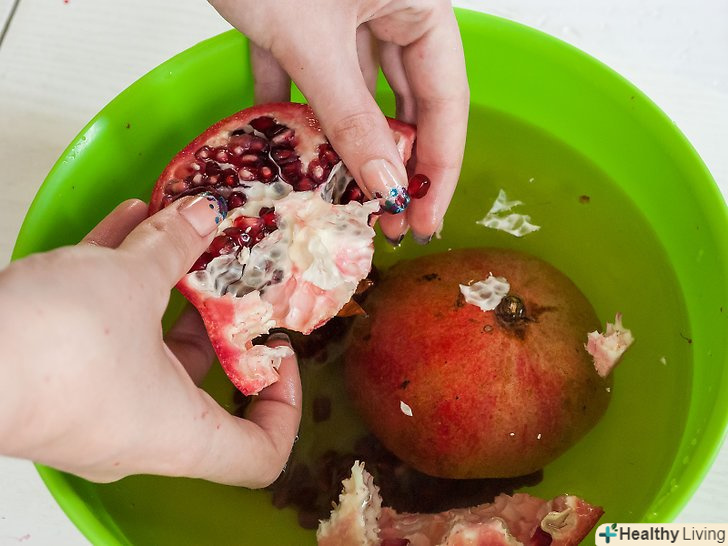 Витягніть зернятка пальцями.Біла м'якоть залишиться на плаву, а зернятка потонуть. Чим ближче ти будеш підступати до шкірки, тим легше тобі буде вивернути фрукт, діставши всі зернятка, навіть ті, що розташовані найближче до краю. Коли ти закінчиш, ти отримаєш скелет граната, з вигляду нагадує дві вивернуті чашки.