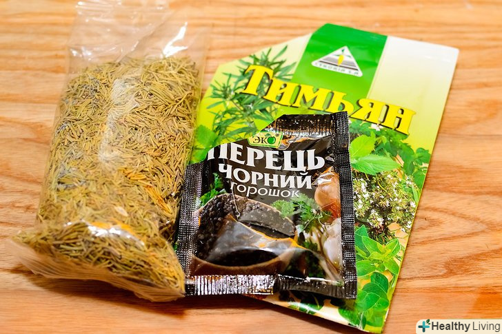 Змішайте за смаком розмарин, чебрець і перець.