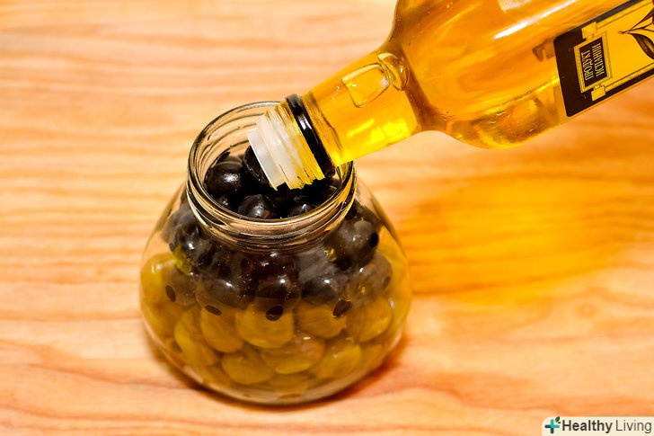 Полийте оливки 1/2 склянки (120 мл.) оливкової олії.