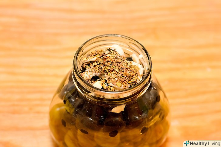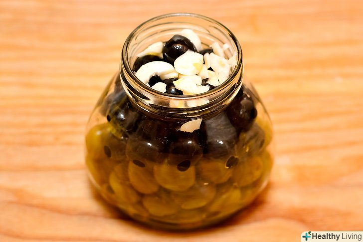 Додайте в суміш 2 ст.л. (30 мл.) подрібненого часнику. Цей крок необов'язковий. Часник надає оливкам сильніший і пікантний смак.