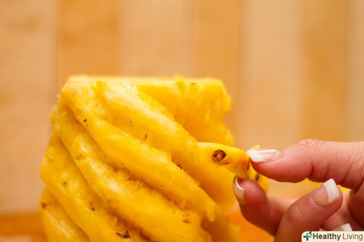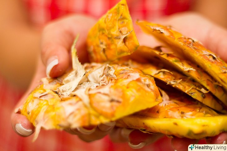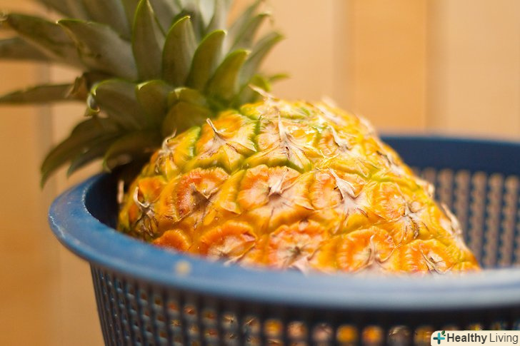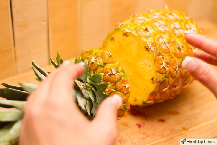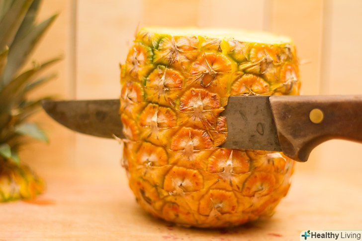 Купівля цілого ананаса економічно ефективний спосіб отримати вітамін С. ананасовий сік і фрукт можуть бути використані в якості размягчителя м'яса або соусу для десертів, а також для їжі в свіжому вигляді. Очищення ананаса може здатися складним через його товсту шкіру; однак, ви можете дотримуватися цього методу, щоб видалити шкіру і очі перед нарізанням.