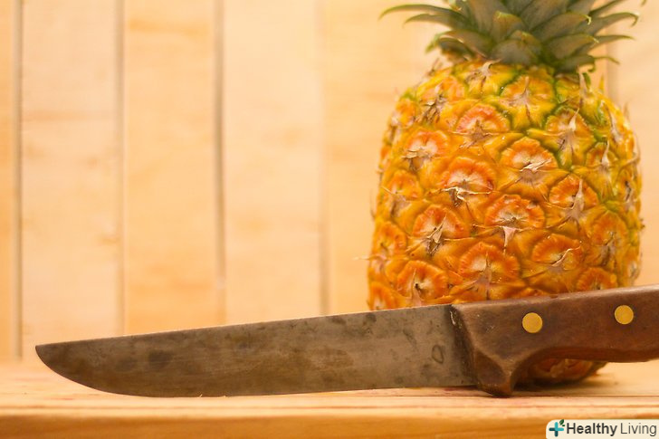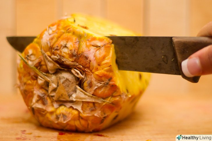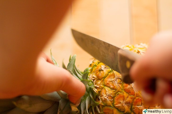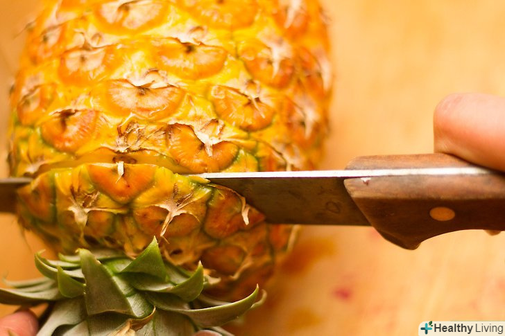 Покладіть ананас на обробну дошку.вам знадобиться дуже гострий кухарський ніж, щоб добре почистити ананас.