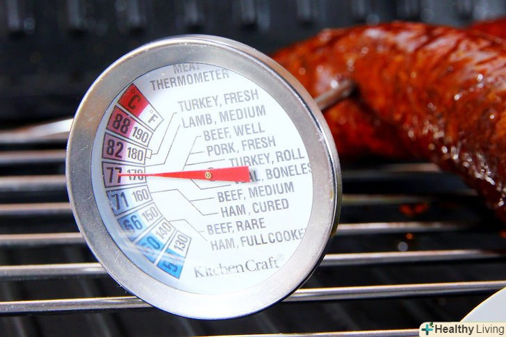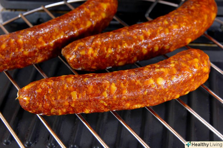 За допомогою термометра для м'яса виміряйте температуру внутрішньої частини сосисок.температура внутрішньої частини готової сосиски повинна бути приблизно 70 °С. якщо сосиски дійшли до потрібної температури, перекладіть їх в зону прямого спека на 3 хвилини, щоб обсмажити до золотистої скоринки. Переверніть сосиски і обсмажте іншу сторону протягом ще 1-3 хвилин.[11]- Обсмажувати сосиски до золотистої скоринки необов'язково. Якщо сосиски повністю присмажилися всередині - вони готові до вживання!