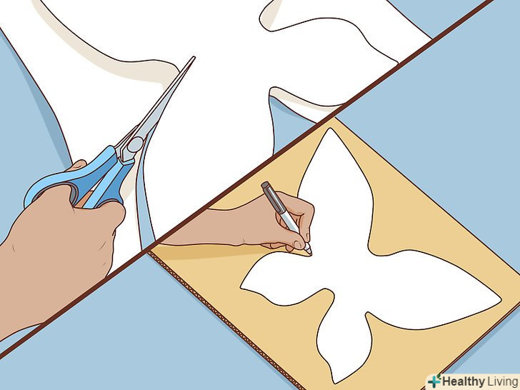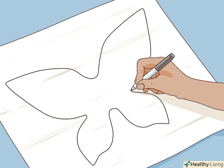 Виріжте намальований на папері трафарет і обведіть його на картоні.виріжте паперовий трафарет уздовж ліній, прикладіть його до аркуша картону і обведіть ручкою або олівцем. Потім розгорніть крила на іншу сторону і обведіть їх ще раз.- Якщо у вас немає картону, замість нього можна використовувати щільний папір.