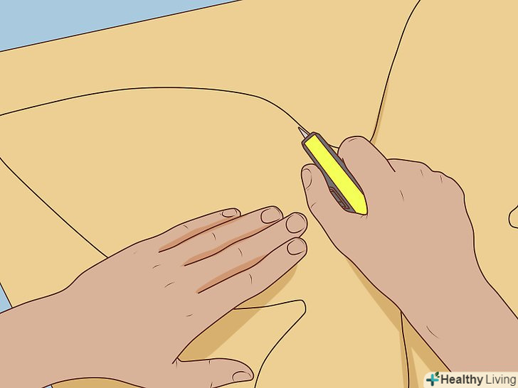 Виріжте крила вздовж щойно проведених ліній.для цього найкраще використовувати канцелярський ніж або ніж для виробних робіт. Якщо ви робите крила з щільного паперу, можна скористатися ножицями. При цьому розріжте картон або папери уздовж внутрішнього краю проведених ліній, щоб їх не було видно на крилах.