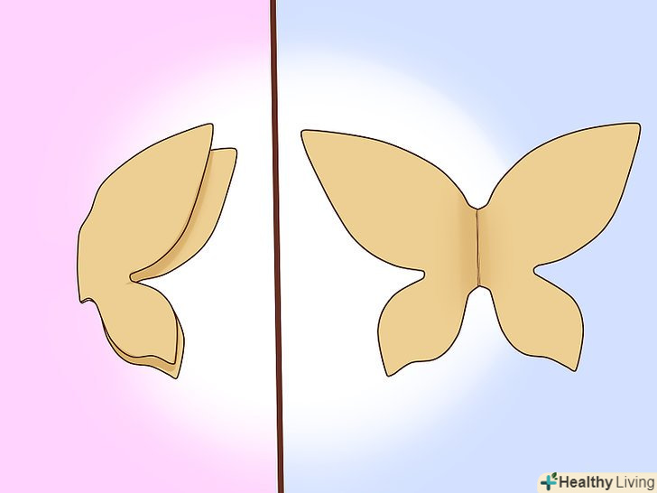 При необхідності поправте крила і надайте їм потрібну форму.зігніть зовнішні крила вгору, а пару внутрішніх крил вниз, щоб вони не стикалися один з одним. Якщо вас влаштовує форма крил, перейдіть до наступного кроку. Можна також надати Крилам потрібну форму, щоб вийшли більш правильні кола, овали або інші фігури.[4]