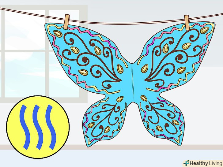 Зачекайте, поки крила як слід висохнуть.точний час залежить від того, що саме ви використовували для їх прикраси. Як правило, звичайна фарба висихає протягом години, проте фарбі з блискітками може знадобитися цілий день. Щоб прискорити процес, можна вивісити крила на сонці.