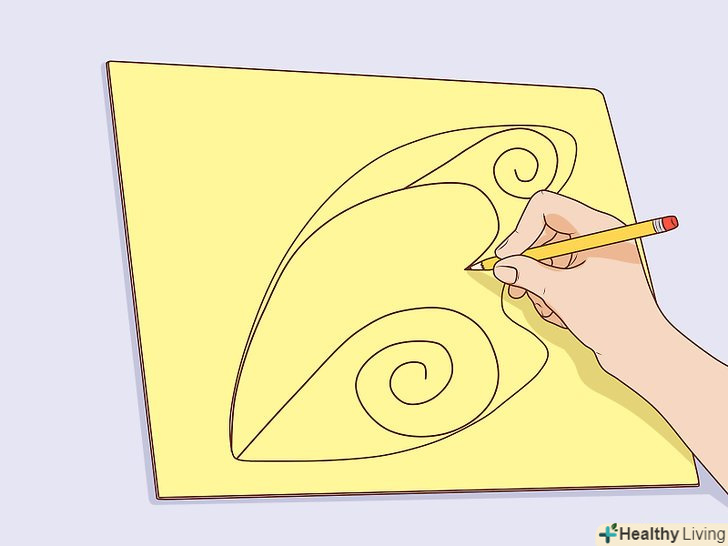 Накресліть ескіз крил на великому аркуші паперу.ви використовуєте його в якості трафарету, тому досить намалювати лише одну половину крил, праву або ліву.[8] Візьміть великий аркуш паперу-наприклад, можна використовувати ватман або газетний папір. Можна також склеїти кілька стандартних аркушів паперу, щоб вийшов один великий аркуш.