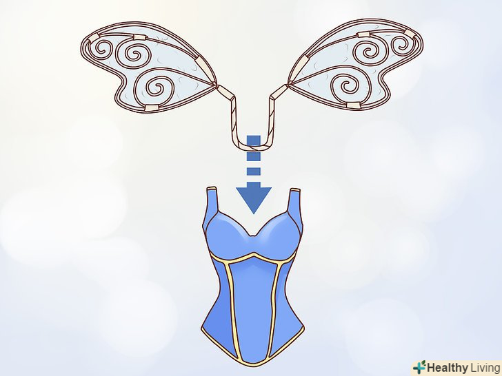 Прикріпіть крила до корсету або іншого щільно прилеглого предмету одягу.якщо ви зробили кріплення у формі підкови, надіньте плаття без бретелей або корсет, а потім протягніть під нього стрижні крил. Облягаюче плаття або корсет притиснуть крила до вашої спини. Якщо ж ви не скріпили стрижні крил дротом у вигляді літери "U", доведеться нашити на спині костюма феї вузькі кишеньки, в які можна буде вставити стрижні крил.