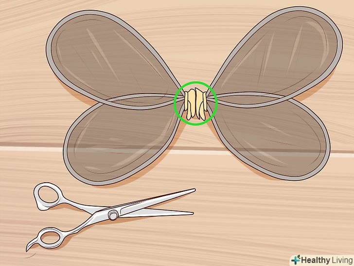 При бажанні скріпіть крила шматком дроту у вигляді латинської літери"U".відріжте трохи міцної дроту, яку ви використовували для виготовлення крил, і зігніть її у вигляді вузької підкови шириною 2-3 пальця і трохи довше долоні. Протягніть в отриману підкову обидва стрижня, які розташовані внизу крил, так щоб вони розташовувалися уздовж внутрішніх країв літери "U". Обмотайте сріблястим скотчем дріт і надійно прикріпіть до неї стрижні.- Скотч повинен повністю приховати стрижні крил. З дроту у вигляді літери " U " повинні виступати лише самі крила.