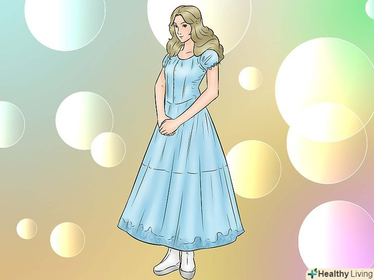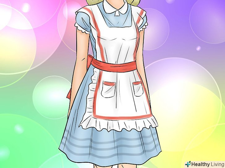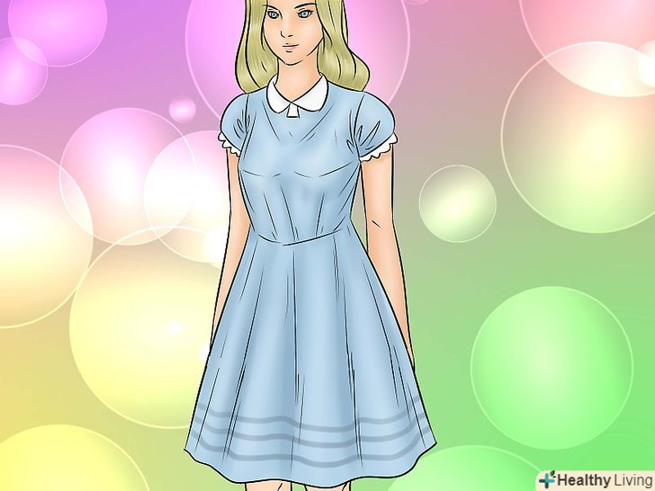Виберіть сукню.оригінальні ілюстрації Тенніела в книзі були чорно-білими, тому колір сукні невідомий, проте в наступних виданнях він традиційно вважався світло-блакитним.- У першому виданні з кольоровими ілюстраціями під назвою " Дитяча книга про Алісу» у героїні була сукня жовтого кольору. Тому Жовтий буде допустимою і цілком автентичною заміною блакитному, проте майте на увазі, що люди можуть відразу не зрозуміти, що ви зображуєте Алісу.[2]