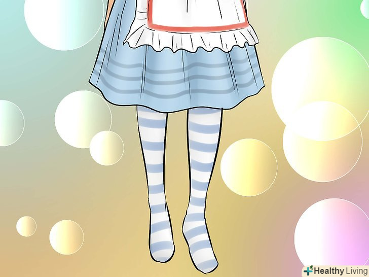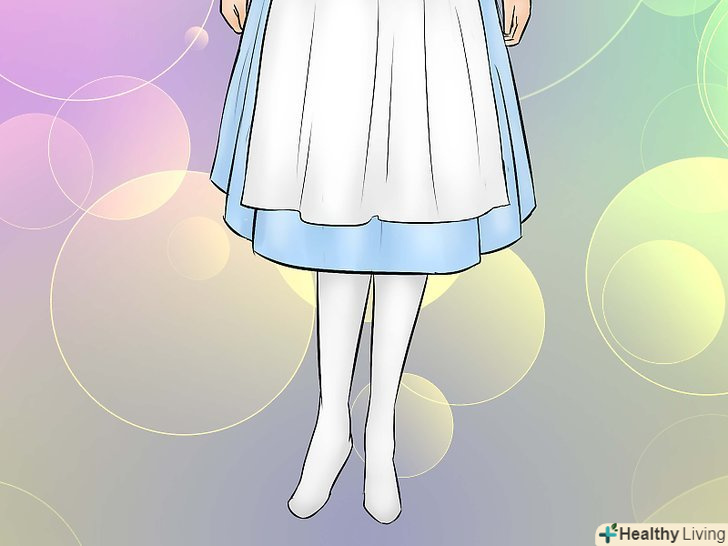 Виберіть панчохи.Діснеївська Аліса носить білі колготки. Враховуйте температуру на вулиці, коли будете робити костюм. Якщо свято буде проходити на відкритому повітрі в холодну погоду, надіньте найтепліші колготки.- У теплу погоду або в жаркому приміщенні вам може бути комфортніше в довгих гольфах або панчохах до колін.