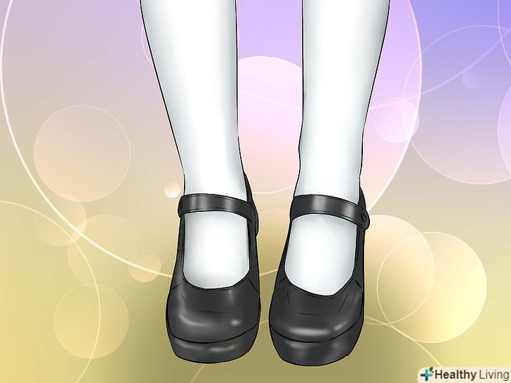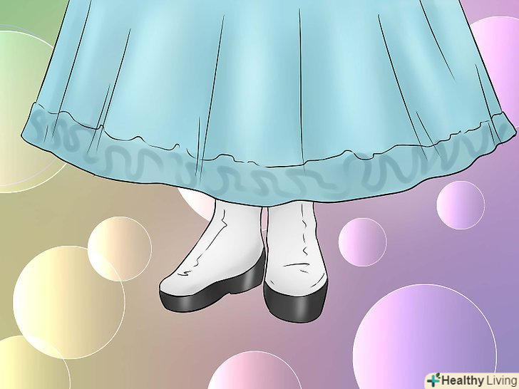 Знайдіть відповідне взуття.у Бертона Аліса носить білі туфлі з маленьким каблучком-гвоздиком і чорним носком. Такі туфлі може бути досить важко знайти.- Чорно-білі "оксфорди" можуть стати переконливою альтернативою.