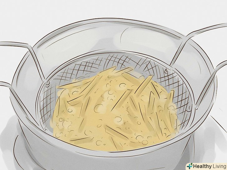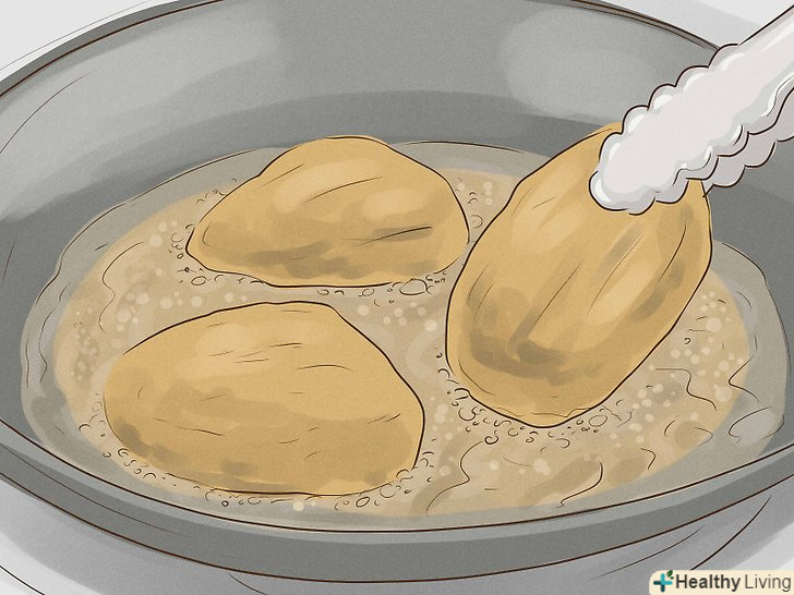 Смажте у фритюрі, щоб зовні утворилася хрустка скоринка.при смаженні у фритюрі їжа повністю занурюється в гаряче масло. При цьому продукти не потрібно перевертати під час приготування, так як вони рівномірно обсмажуються в маслі з усіх боків.- Таким чином готують різні страви в клярі, картопля фрі і пончики.