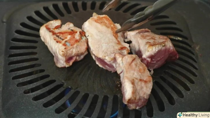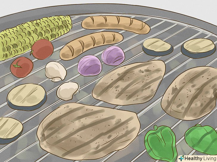 СмажтеІГотуйте продукти на грилі, щоб вони вкрилися апетитною скоринкою.смаження на грилі являє собою сухий метод приготування їжі, при якому вона розігрівається на відкритому вогні. При цьому джерело тепла може розташовуватися як над їжею, так і під нею.- При приготуванні їжі на грилі її розташовують поблизу джерела тепла. Це означає, що їжа досить швидко підсмажиться зовні, тому даний спосіб добре підходить для приготування шматків ніжного м'яса, курки і риби.