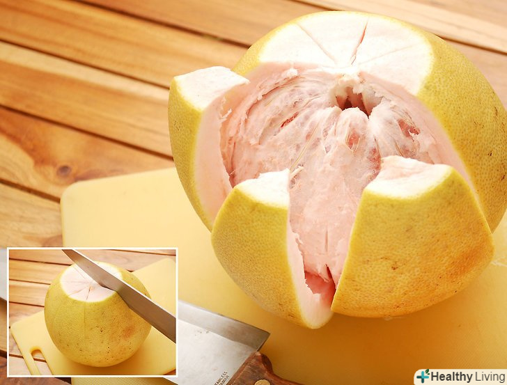 Відріжте "верхівку" одного кінця помело.ніж повинен зрізати близько 1,5 см шкірки.