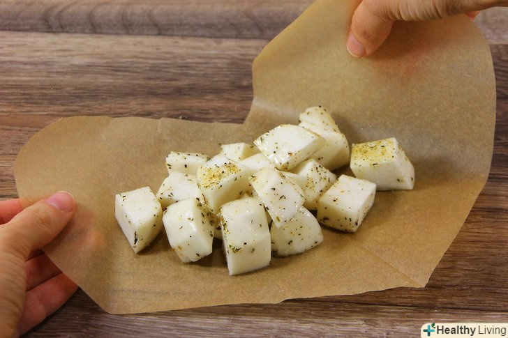 - Деякі овочі краще готувати на алюмінієвій фользі, а не на пергаментному папері. Якщо використовувати фольгу для запікання таких продуктів, як картопля, буряк, кукурудза і кольорова капуста, овочі в результаті вийдуть більш м'якими, ніж при використанні пергаментного паперу.[8]