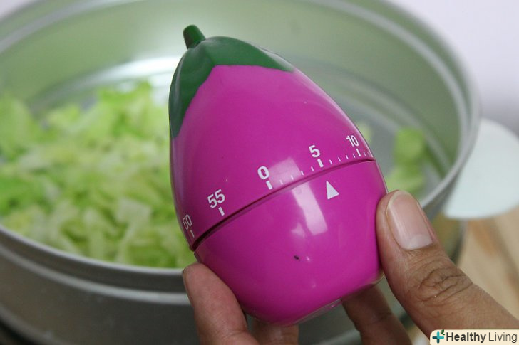 слідкуйте, щоб дно гратчастої каструльки не стикалося з водою. Якщо кипляча вода досягає дна каструльки, в кінцевому підсумку, ви отримаєте варену знизу капусту, а не пропарену. - Якщо у вас немає гратчастої каструлі, можна використовувати металевий або дротяний друшляк. Просто переконайтеся, що друшляк може перебувати на каструлі без падіння і з кришкою.
