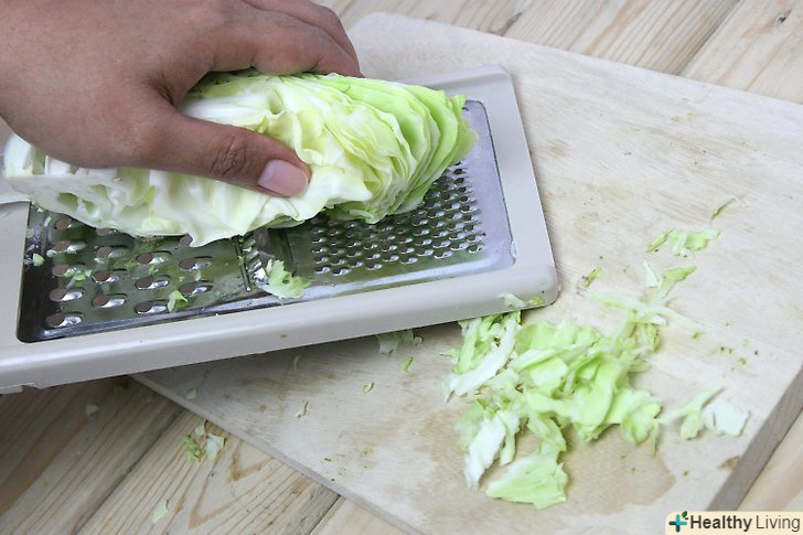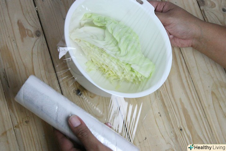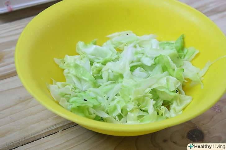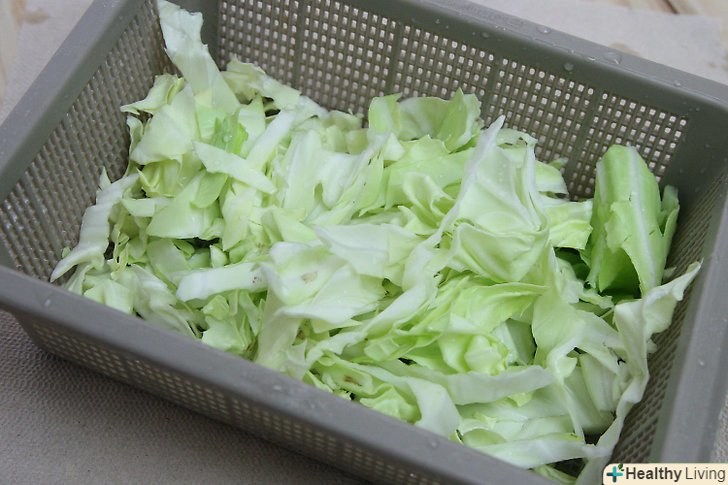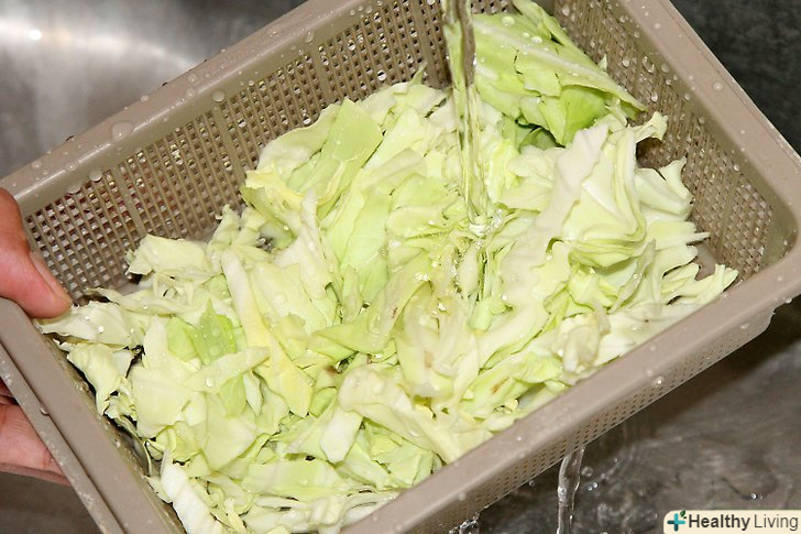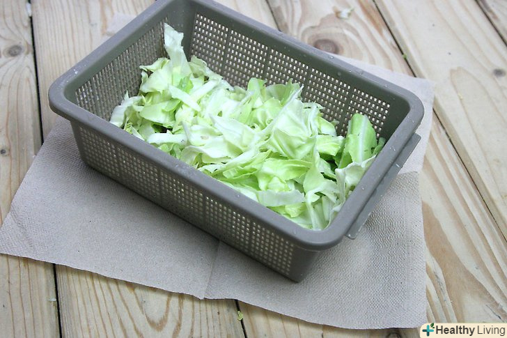 Вимийте капусту.помістіть капусту на друшляк і промийте її під прохолодною водопровідною водою.- Помістіть друшляк на чисті паперові рушники, і нехай вода стече протягом декількох хвилин, перш ніж продовжувати.