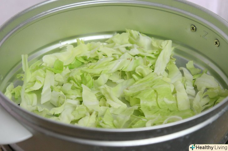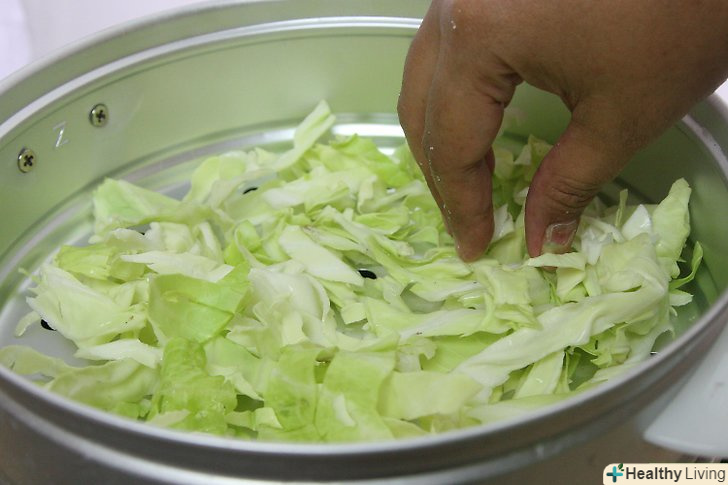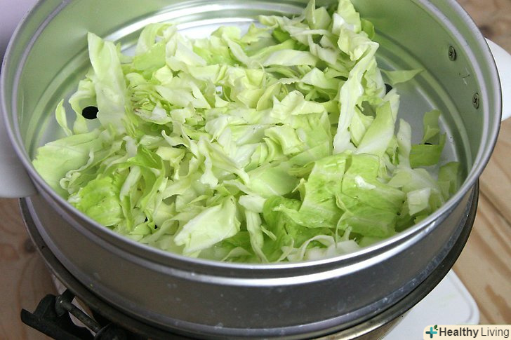 Помістіть підготовлену капусту в парову каструльку.розподіліть капусту рівним шаром.- Якщо готуєте нашатковану капусту, то ви повинні переконатися, що вся капуста розподілена по дну рівномірно.