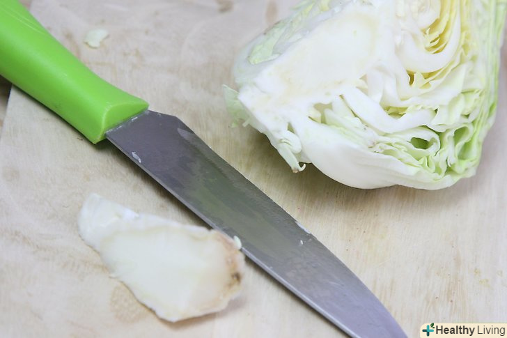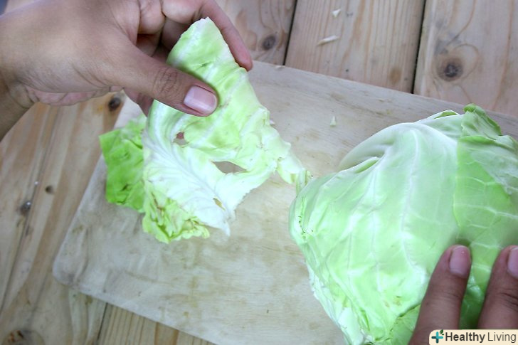 Видаліть пошкоджені листя.ці листя повинні бути досить широкими, щоб очистити їх руками.- Видаляти слід все пониклі і пошкоджені листя. Для круглих качанів, як зелена капуста, червона капуста, і савойська капуста, ви повинні також видалити самі товсті зовнішні листя.