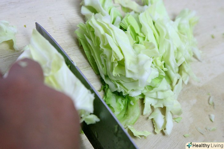 Наріжте капусту, якщо це необхідно.якщо ви хочете приготувати нашатковану капусту, розріжте на тонкі дрібні смужки кожен клин перед приготуванням.-