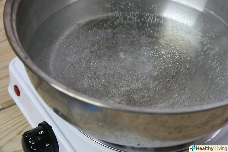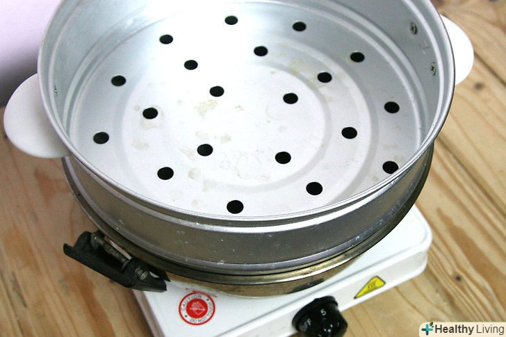 Закип'ятіть воду в каструлі.встановіть зверху каструлі з водою меншу гратчасту каструльку, але стежте, щоб дно каструльки не стикалося з водою.- Каструля повинна бути на 1/ 4 наповнена водою, якщо не менше.