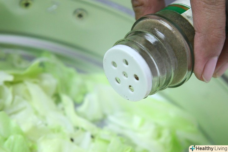 Приправте сіллю і перцем.посипте листя сіллю і перцем, при бажанні, щоб додати аромат капусті в процесі приготування.- Використовуйте близько 1 ч. л. (5 мл) солі і 1/2 ч.л (2,5 мл) меленого чорного перцю, або додайте приправи на свій смак.