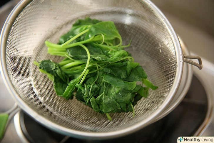 Злийте зі шпинату зайву воду через сито або шумовку.