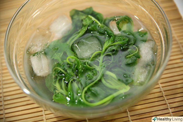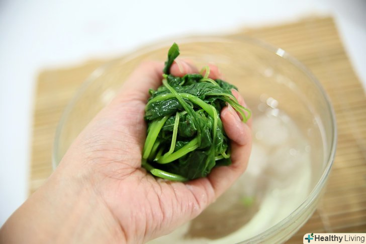 Покладіть шпинат у воду з льодом.залиште бланшований шпинат в крижаній воді на кілька хвилин, або поки він не охолоне. Це зупинить процес приготування, збереже його текстуру і поживні речовини.