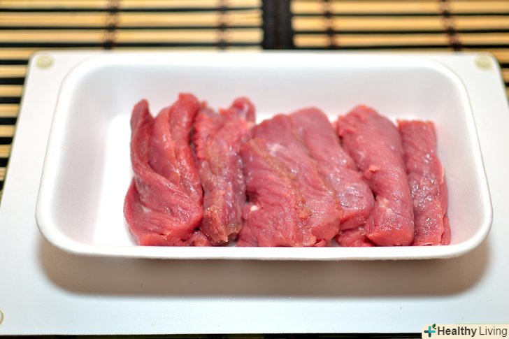 - Мийте руки, вашу обробну дошку і Ваш ніж, а також будь-яку іншу поверхню, які вступають в контакт з сирим м'ясом. Бактерій на поверхні м'яса можуть викликати хвороби харчового походження, якщо ви вживаєте його або випадково торкнетеся чистої поверхні, не помивши руки. = = Що вам знадобиться = =