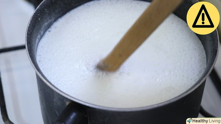 - Кип'ятіть молоко протягом двох-трьох хвилин, постійно помішуючи його.цього часу достатньо, щоб молоко стало придатним до вживання. Подальше кип'ятіння лише зруйнує всі поживні речовини.[2]