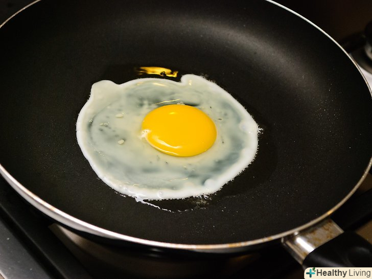 Підсмажте яйця на ДХІ або рослинному маслі.якщо ви любите яєчню, то постарайтеся використовувати корисні для здоров'я масла. ДХІ вважається більш здоровим вибором у порівнянні зі звичайним вершковим маслом або маргарином. Використовуйте невелику кількість кокосового масла - воно добре підходить для смаження, оскільки не окислюється при високих температурах.[8]- Користуйтеся сковородою з антипригарним покриттям, щоб обмежити кількість масла при смаженні яєць.[9]